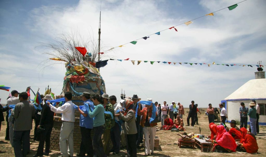 蒙古族祭敖包活动一般在每年的农历五月至七月间。敖包原来是在草原上人们用石头堆成的道路和境界的标志,早先蒙古族以天地是人类赖以生存的源泉,特别崇拜。由于天地神没有偶像,人们就堆敖包以象征,从而敖包就成了人们的崇拜物。人们通过祭敖包祈求天地神保佑人间风调雨顺,牛羊兴旺,国泰民安。此项目已列为鄂尔多斯市级第五批非物质文化遗产保护名录。