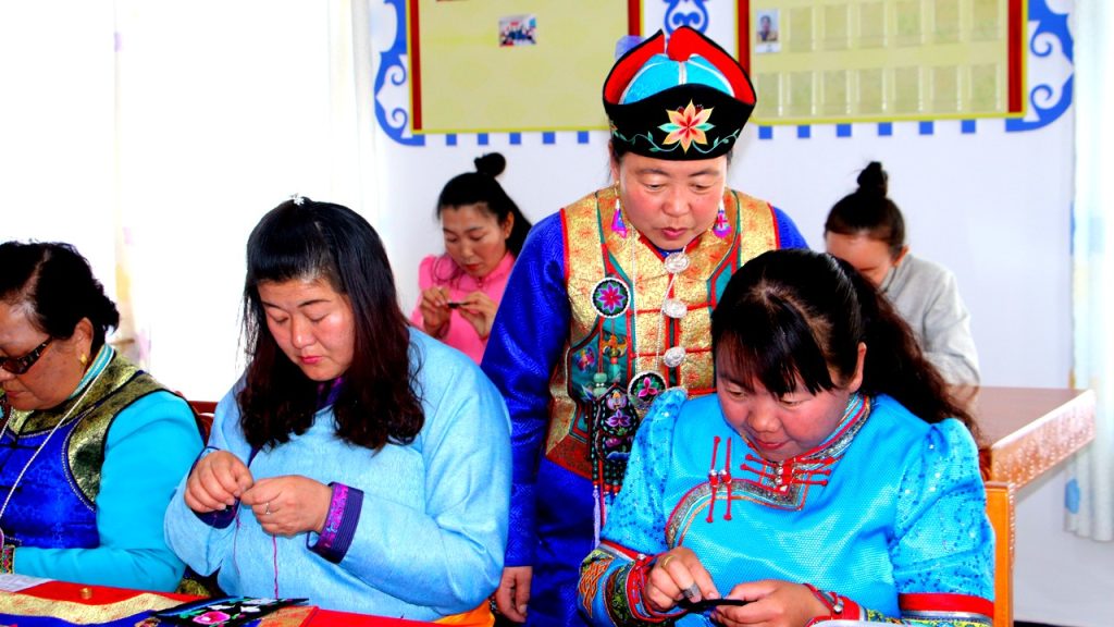 在举办鄂尔多斯蒙古族刺绣培训班培养了100多名徒弟。