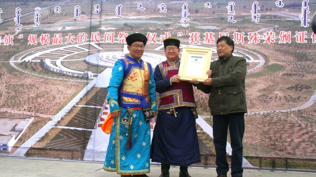 2014年,鄂托克前旗民间祭祀文化协会组织的祭火活动 成功申报上海大世界基尼斯之最