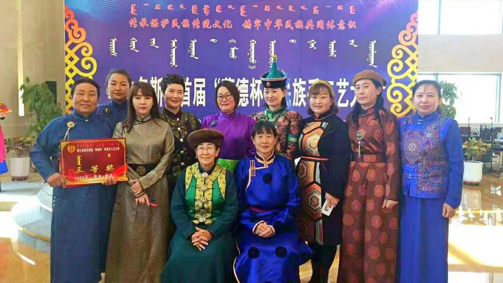 蒙古族刺绣市级代表性传承人;2014年、2015年分别在全市八旗区、八省区民族手工艺品大赛中荣获蒙古刺绣类2个一等奖。