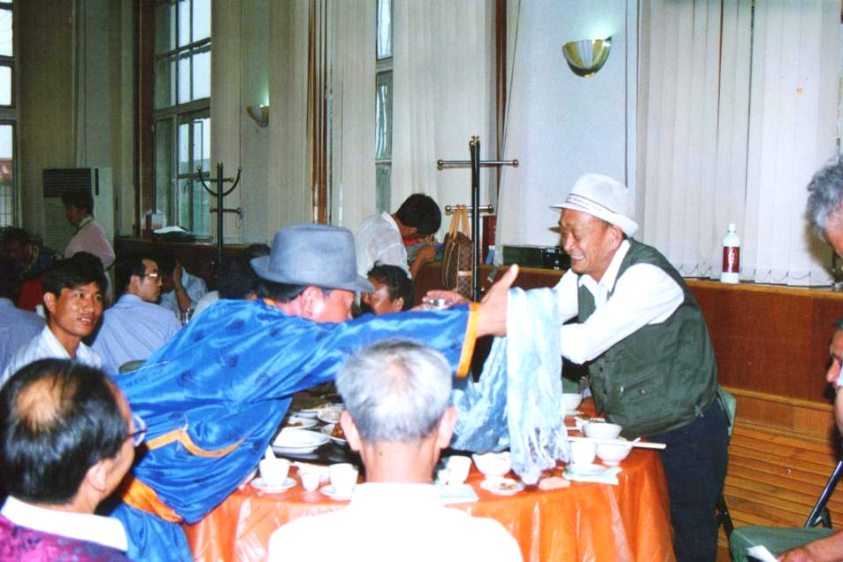 格·德格吉日夫熟练掌握 了解了鄂尔多斯人的风俗礼节,接连不断地接待中央、省、自治区、盟、旗县级各行 各业的领导和层次不同的客人许许多多。他用蒙古民族的最 高礼节放羊背,敬哈达、朗诵祝诗。