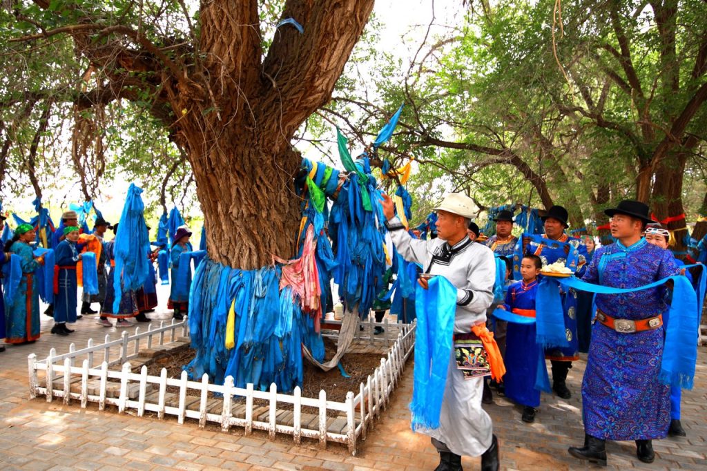 在鄂托克前旗城川镇巴彦希里嘎查榆树壕保存着传统的蒙古族祭树活动,每逢农历五月初三在这里举行盛大的祭树活动,使这一古老的祭祀活动不断传承发展
