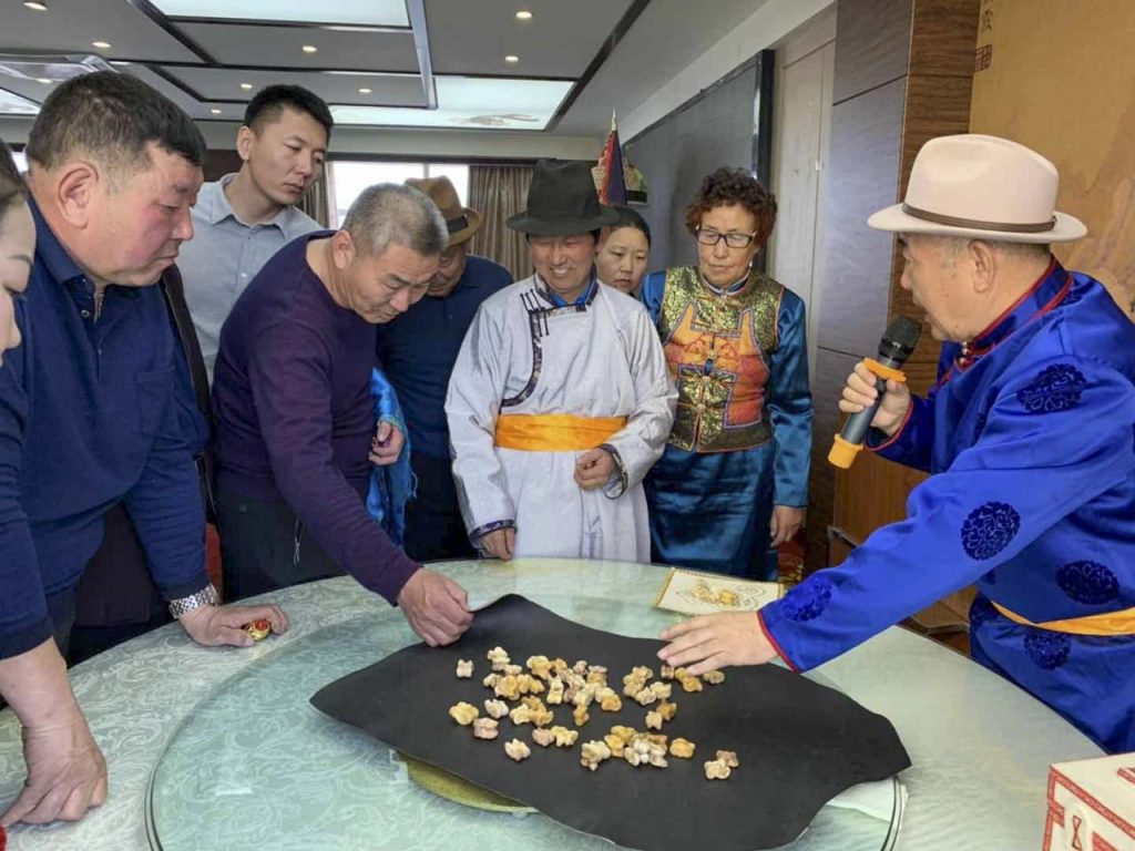 鄂尔多斯蒙古族沙嘎游戏,沙嘎是指羊踝骨。鄂尔多斯蒙古族对沙嘎的六面名称说法不一,如:宽凸面叫“浩尼”(绵羊),宽凹面叫“雅玛”(山羊),窄凸面叫“毛日”(马),窄凹面叫“乌和日”或“特莫”(牛或骆驼),正立的叫“翁高”,倒立的叫“通高”。 沙嘎游戏有抓“沙嘎”、箭“沙嘎”、弹“沙嘎”、“赛马”、猜“沙嘎”等众多类型的玩法。此项目已列为鄂尔多斯市级第六批非物质文化遗产保护名录。