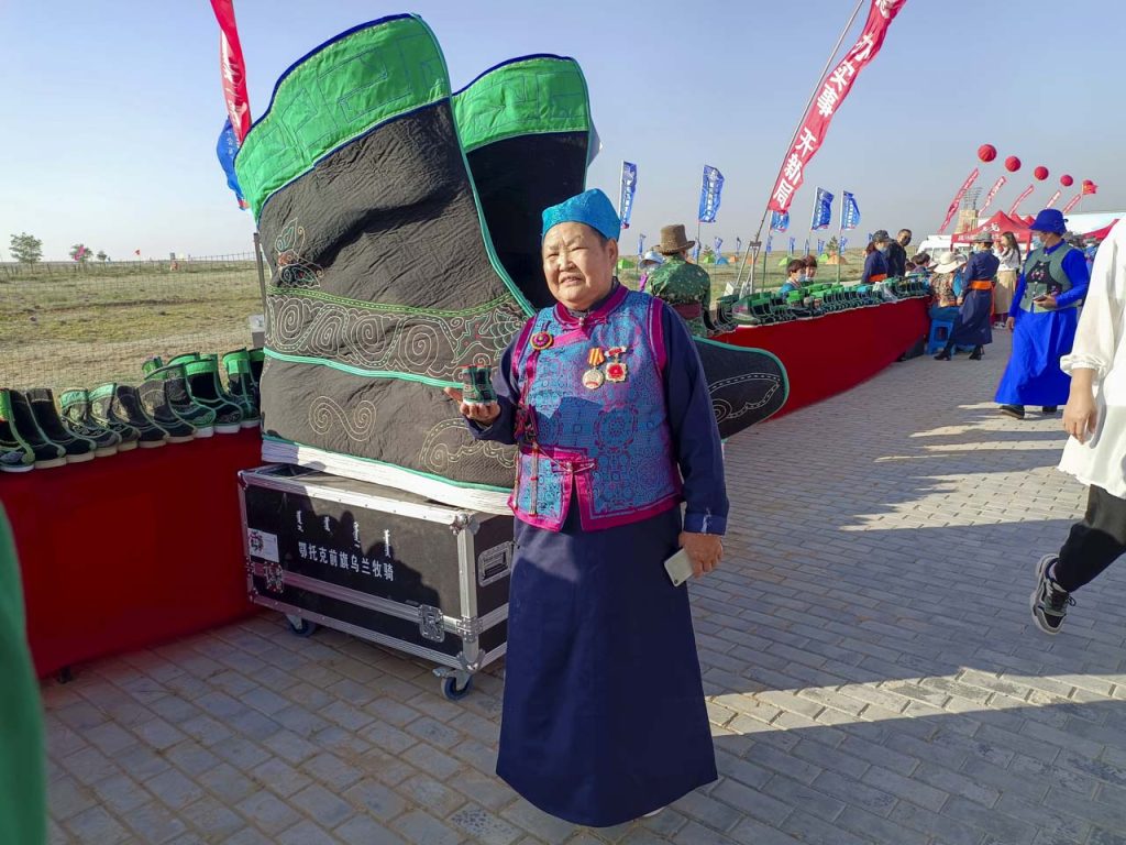 鄂尔多斯马海以独特的艺术手法,展现出无穷的艺术魅力。她完全适应了蒙古高原大陆性气候和海拔高、地形复杂的自然环境,符合蒙古民族逐水草而居的游牧经济和社会生活。据统计,宝锁尔,女,1931.10出生,跟外祖母德吉德、母亲宝日勒岱学过制作马海,到如今年巴德玛老人制作民族民间宝贵的传统手工技艺继承。该项目2008年被列入旗级非遗项目名录。鄂尔多斯制作马海传承谱系不详。蒙古族马海,尤其是鄂尔多斯马海在历史的演过程中承载着蒙古族文化的诸多内容。马海一词来源于蒙古语“mahai”的音译,在现代一般选用黑色大绒布制作,它的靴筒较长,用来保护脚踝,以免受伤。鄂尔多斯马海以独特的艺术手法,展现出无穷的艺术魅力。她完全适应了蒙古高原大陆性气候和海拔高、地形复杂的自然环境,符合蒙古民族逐水草而居的游牧经济和社会生活。据统计,宝锁尔,女,1931.10出生,跟外祖母德吉德、母亲宝日勒岱学过制作马海,到如今年巴德玛老人制作民族民间宝贵的传统手工技艺继承。