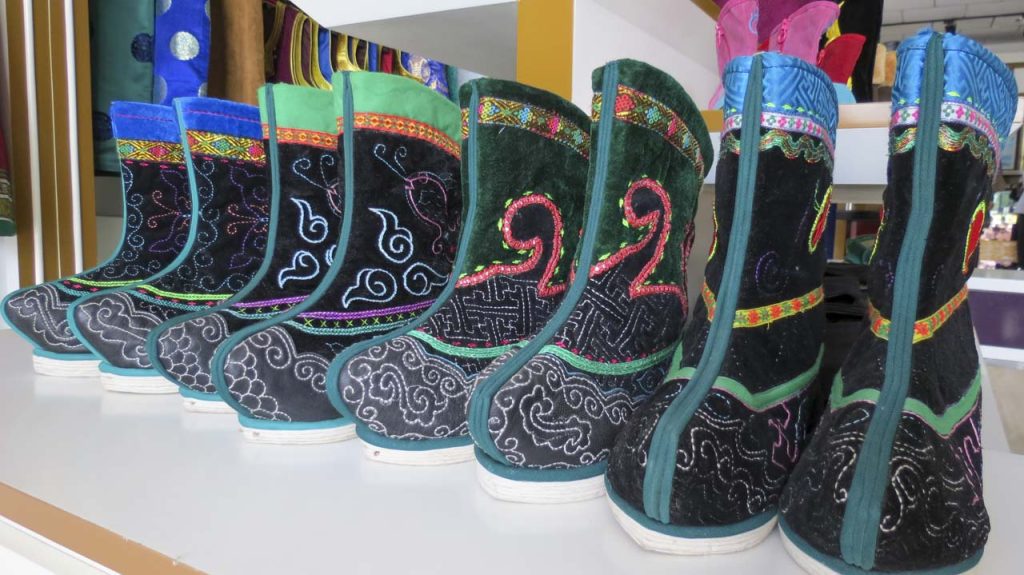 马海一词来源于蒙古语“mahai”的音译,蒙古靴作为蒙古族服饰的重要组成部分。在现代一般选用黑色大绒布制作,它的靴筒较长,用来保护脚踝,以免受伤。早期的马海由于受材料的限制,做工单一、形式单一在制作材料、表面纹饰等方面经历了变革。